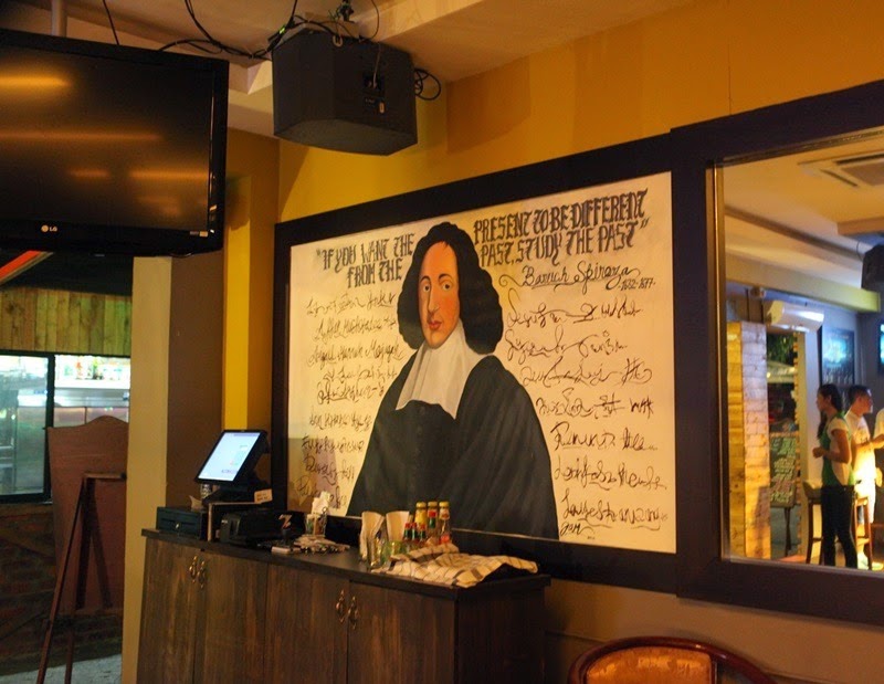 Ook Kota Kinabalu in Maleisië heeft zijn Spinoza Bar en grill. Ik kwam daar achter doordat een Chinees meisjes een blog heeft waarop ze vooral foto's plaatst van haar eetuitstapjes met een grote groep vriendinnen en een paar jongens. En daartussen zat deze foto van Spinoza in KK town, zoals Kota Kinabalu veel wordt afgekort, zoals ik al snel ontdekte.
