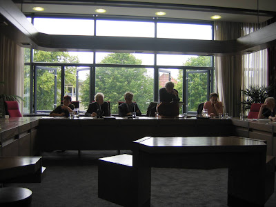 Gisteren, zaterdag 27 juni 2009, vond in het voormalige gemeentehuis van Rijnsburg aan de Burg. Koomansplein de jaarvergadering van de Vereniging Het Spinozahuis plaats. Daarvan hier enige foto's.