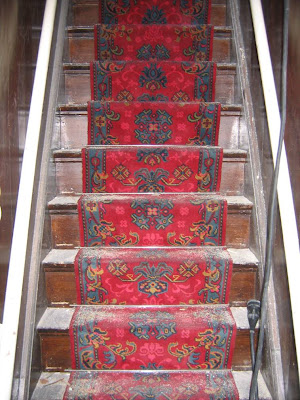 De erg smalle, maar vooral erg steile trap waaraan men iets wil doen om ook de bovenetage als museumruimte toegankelijk te kunnen maken.