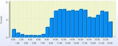Een duidelijk patroon (minder gedurende etenstijd…). In de nachtelijke uurtjes komen wellicht de bezoekers uit de VS (zie onder).