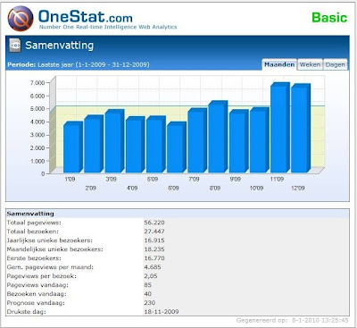 Het aantal bezoeken is redelijk constant, maar de laatste maanden van 2009 wat opgelopen.