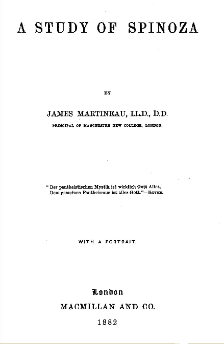 James Martineau (1805 – 1900) A Study of Spinoza