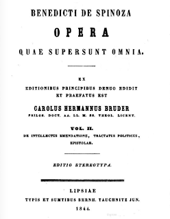 "The most important edition in Germany in the nineteenth century, with a very wide circulation, was that of Karl Hermann Bruder: Benedicti de Spinoza Opera Quae Supersunt Omnia (three volumes, 1843-1846). It went through several reprints, even in the twentieth century, though all are dated 1843— 1846. Bruder did go back to the original seventeenth-century texts but still reproduces some of Paulus's errors. Many commentators and translators worked from this Opera edition. An interesting feature of Bruder's edition is that he divided some texts into manageable, numbered sections. In referring to passages of the Tractatus de intellectus emendatione, Bruder's section numbers have since established themselves as the standard, but regrettably his numbering of the TTP did not catch on."