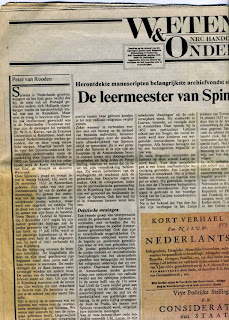 Om het dossier compleet te maken nog dit. Op 21 juni 1993 nam Leon Kluunders op zijn despinoza.nl de bespreking over die Trouw wijdde aan het boek 'Franciscus van den Enden: Vrije Politieke Stellingen'. Ingeleid door dr. W. Klever [Wereldbibliotheek, Amsterdam; 249 blz.] dat hij aldus inleidde: