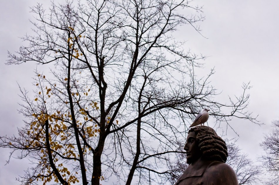 Op 28 november 2012 maakte hij deze foto's van het beeld van kunste-naar Nicolas Dings bij de Stopera in het najaarszonnetje - ook fraai.