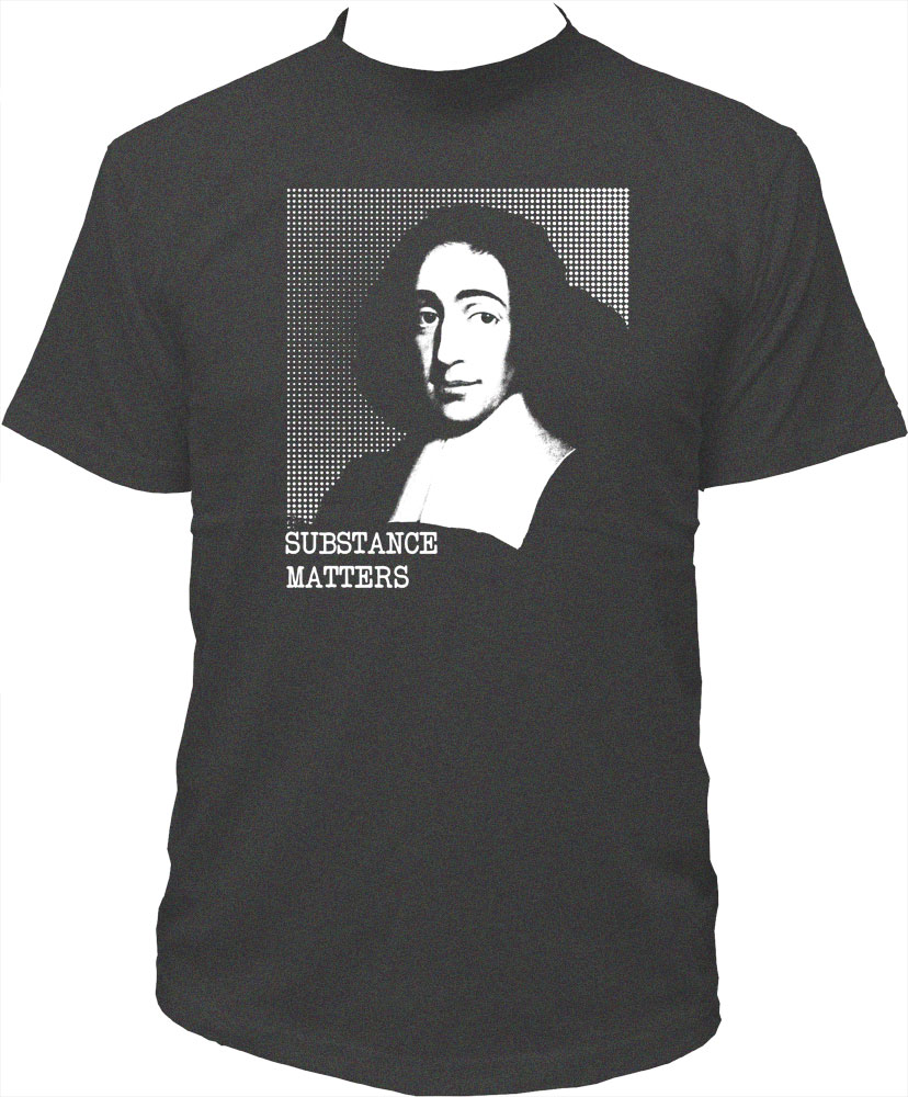 U weet, ik houd 'alles' bij inzake Spinoza (of toch bijna alles) en geef dat als service door. Welnu, in de loop van de tijd heb ik al aardig wat Spinoza-shirts gesignaleerd, o.a. van Tresnormale, maar dat heeft het Spinoza T-shirt nu vernieuwd. Ik haal hieronder het model voor de man binnen, maar eerst het sjabloon dat er voor ontworpen werd: