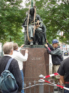 Ook 't Haagse Spinozabeeld op weg naar Stroom