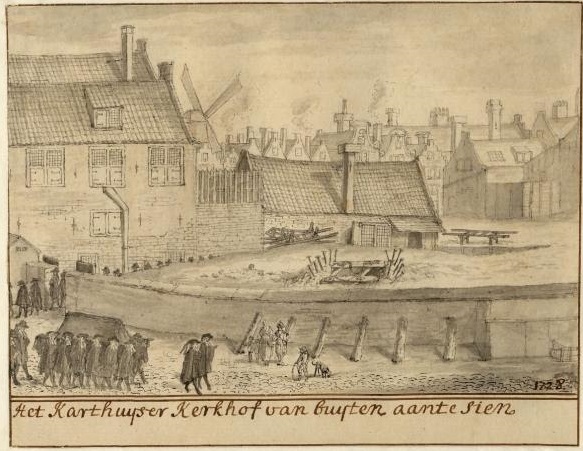 Peter Balling’s omens could have concerned things other than his little boy’s death (which may not have been recent: the only record of the burial of a “child Peter Balling” is for 16 October 1661), since one “Pieter Balling”, living on the Burghwal opposite the Swan Brewery was buried on 23 December 1664, in an emergency graveyard in the grounds of an old monastery, fourteen guilders being paid for the beir and boat-cover used for his brief obsequies (152).