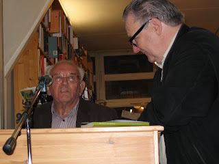 Vervolgens introduceerde Stan Verdult emerites hoogleraar Herman Berger (rechtsvooraan), auteur van het boek De Ethica van Spinoza. Een handreiking [Garant, Antwerpen/Apeldoorn, 2011], die een toespraak over Spinoza ging houden.