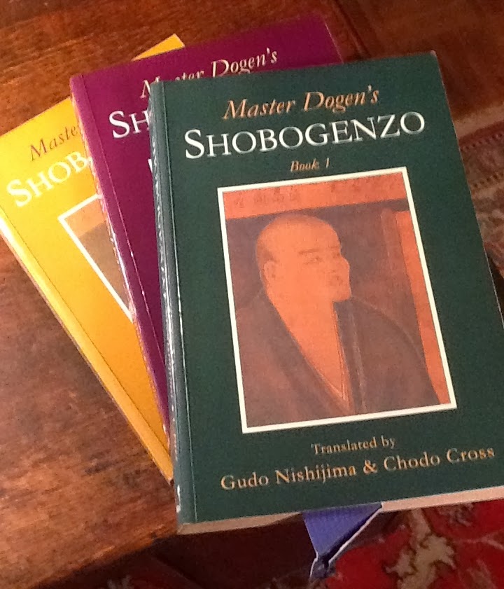 De foto van de drie delen van meester Dogen's Shobogenzo heb ik aan het eind van het blog toegevoegd. Al heel lang geleden is dus door een Spinoza-kenner het verband met Dogen al gelegd. Mooi die vergelijking met de Ethica, die overigens - uiterst modern - een zo hermetisch "poëtisch werk" is dat de meesten het poëtische er niet aan kunnen beleven...