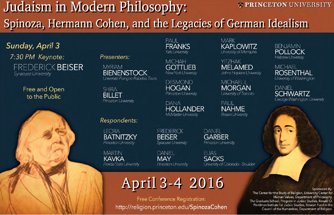 Op 3 en 4 april 2016 heeft aan het Center for the Study of Religion aan de Princeton University een conferentie plaats over: Judaism in Modern Philosophy - Spinoza, Hermann Cohen, and the Legacies of German Idealism.