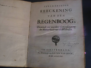 Opvallend is dat er nog steeds een exemplaar van Stelkonstige Reeckening van den Regenboog in de uistalkast ligt, terwijl toch al lang aangetoond is dat de toeschrijving aan Spinoza van dat werk onjuist is.