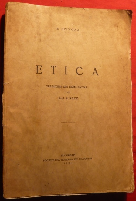 B. Spinoza, Etica demonstratã dupã metoda geometricã - trad. din limba latinã de S. Katz. Bucuresti : Casa scoalelor, 1929 [cf. en woldcat en ro.wikipedia]