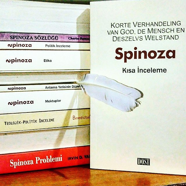 Dag Stan, met mijn beperkte kennis van het Turks, blijf ik hangen bij het onderste boek op de stapel. "Spinoza dagboek 2, van de nieuwe wereld naar de oude wereld" staat erop. Dagboek? En niet van de oude wereld naar de nieuwe wereld, maar omgekeerd? Wat zal dat zijn, zeg?