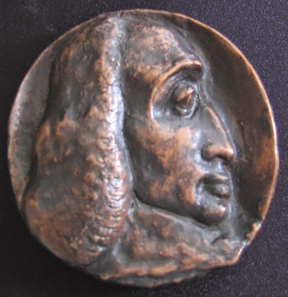 De enige mij onbekende en tegelijk fascinerende en misschien wel mooiste (hoewel ik de penningen van de VHS en de Societas Spinozana uit resp. 1927 en 1932 nog steeds de meest echte en mooiste vind) is onderstaande, waarover ik nog nadere gegevens zal ontvangen. Hier toch alvast de afbeelding (die scherper hád gekund...) van eigenlijk ook meer een beeldhouwwerkje dan een penning: