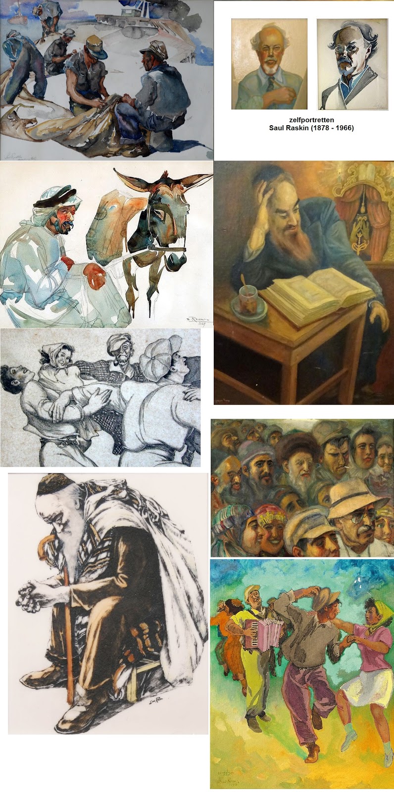 Saul Raskin was een in tsaristisch Rusland in Nogaisk (nu Prymorsk in Oekraïne) geboren Amerikaanse kunstenaar, illustrator, schrijver en leraar die vooral bekend werd vanwege z’n sterk joodse onderwerpen. Hij studeerde lithografie in Odessa, reisde door Duitsland, Frankrijk, Zwitserland en Italíë, in welke landen hij als lithograaf werkzaam was en tevens diverse kunstscholen bezocht. Hij emigreerde naar de VS, waar hij in 1904 of 1905 in New York City aankwam. Hij werkte er als cartoonist en karikaturist voor diverse New Yorkse jiddische bladen, vooral het satirische Der Groyser Kundes. Hij leverde ook cartoons aan Europese bladen. Onder enige specimen van zijn werk. [wiki]