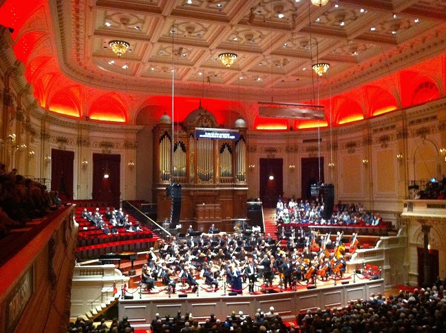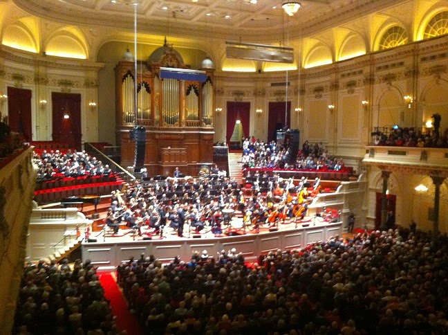 Dit is een blog zonder illustratie, jammer genoeg. Maar fotograferen is in het Concertgebouw niet toegestaan. Op het balkon in de rij voor mij, nam iemand wel enige foto's. Hij bleek een Fransman, toen ik hem vroeg om mij voor mijn blog zijn foto’s toe te zenden. Dat zegde hij toe, maar ik heb (nog) niets ontvangen. Dus ik moet het zo laten, een blog zonder illustratie. Nou ja, deze dan [van hier].