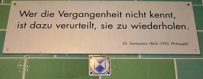 Plaquette met citaat van Santayana in Auschwitz
