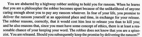 • Lee C. Rice, "Spinoza and Highway Robbery." In: Archiv für Geschichte der Philosophie 80 (1988): 211-218. [Cf.] Dat artikel opende met deze case: