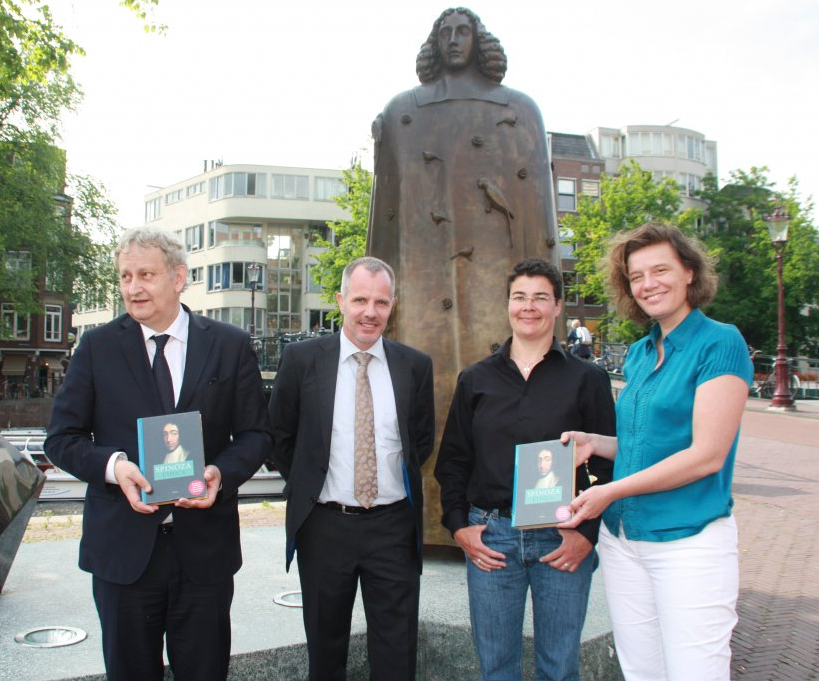 Vlnr: Everhard van der Laan (burgemeester van Amsterdam), Han van Ruler (tekstbezorger van deze Ethica), Corinna Vermeulen (Latinist & vertaalster van deze Ethica), Carolien Gehrels (wethouder cultuur van Amsterdam)