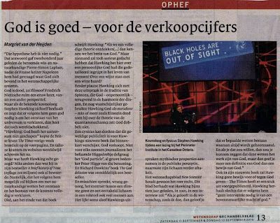 Stephen Hawking weet hoe hij zijn nieuwe boek 'The Grand Design' moet verkopen. Om te beginnen door het een foute titel mee te geven. En vooral door ruim een week voor uitkomen te zorgen voor een uittreksel dat grote aandacht in de pers krijgt daar hij vooral allerlei uitspraken doet over – het niet nodig zijn van - God. En door vooral in discussie te gaan met Isaac Newton’s ‘theorie’ dat God zich met de schepping had moeten bemoeien want dat door de werking van louter de natuurwetten nooit uit de chaos dit heelal had kunnen ontstaan. In A Brief History of Time achtte hij het geloof in een schepper niet onverenigbaar met wetenschap, nu komt hij daarop terug en lijkt hij opgeschoven in de richting van Spinoza’s God. Maar of hij Spinoza erbij haalt heb ik nog nergens gelezen.