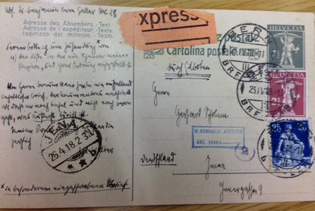 Briefkaart van Walter Benjamin aan Gershom Scholem [van Judith