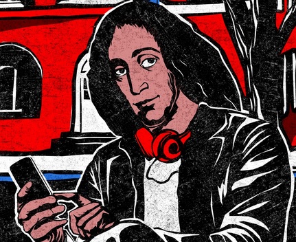 In plaats van bovenstaande cartoon van de wat bangig kijkende verbannen Spinoza, kome deze illustratie van de moderne Spinoza