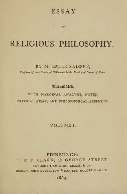 Saisset, Émile Edmond, Essais sur la philosophie et la religion au XIXe siècle (1845) [cf Gallica]