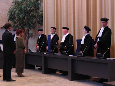 Emeritus prof. Herman De Dijn, door de promotiecommissie gemandateerd, deelde de promovenda de 'uitslag' mee. De verdediging van haar dissertatie werd goed geacht en zij kon door hem worden opgenomen in de rijen der doctores...