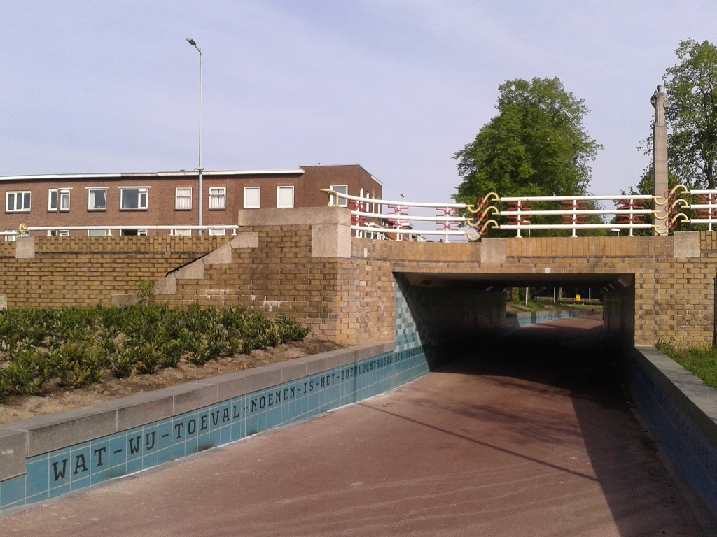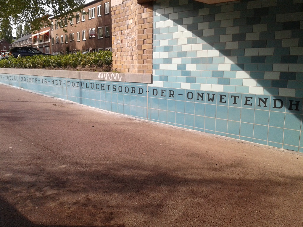 Op 12 december 2014 had ik een blog over de Spinozatunnel in Utrecht. Toen was nog slechts één wand van de tunnel, die aan de waterzijde, betegeld. Aan de tunnelwand aan de landzijde, waarin Spinoza afgebeeld zou worden, zou later gewerkt worden. Ook die zijde is nu afgewerkt en op donderdag 28 mei j.l. bracht Fred Dekkers, voorzitter van de Wijkraad West Utrecht, de volgende tweet: